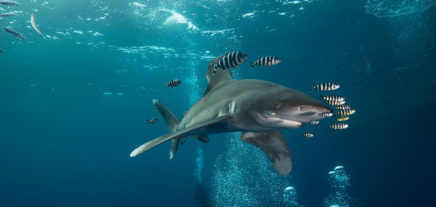 Aunque se encuentra ligeramente al norte de Fury Shoals, Elphinstone es una parada obligatoria en la ruta sur. Este arrecife es conocido por sus paredes verticales cubiertas de corales y por ser un punto de encuentro con grandes pelágicos, incluyendo tiburones martillo y tiburones oceánicos de punta blanca (longimanus).